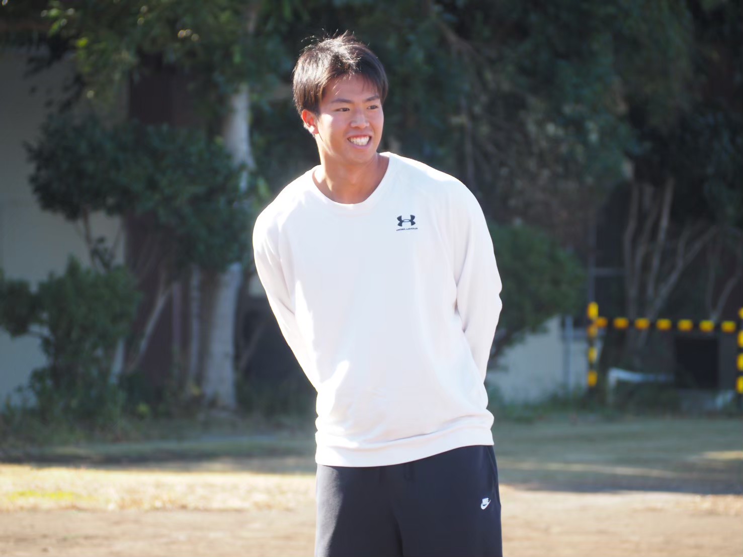 報告に訪れてくれたのは、2025年プロ野球ドラフト会議において、福岡ソフトバンクホークスから育成ドラフト指名された鈴木貴大・外野手です。