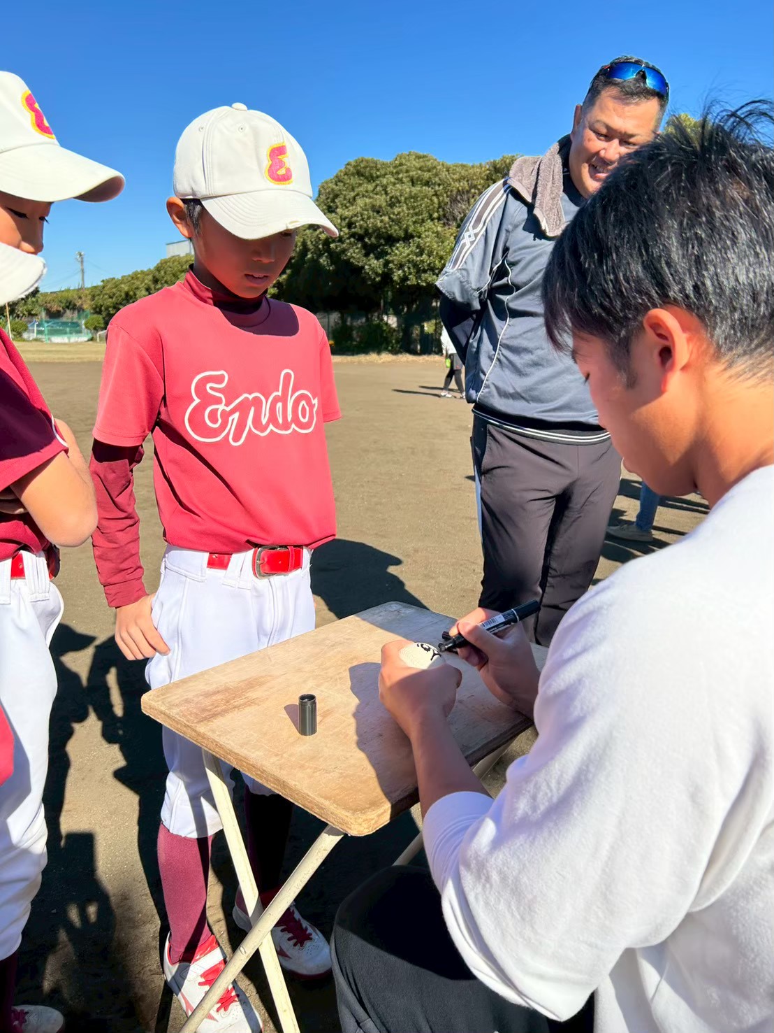 遠藤初のプロ野球選手の登場に、遠藤少年たちはワクワクソワソワ!!