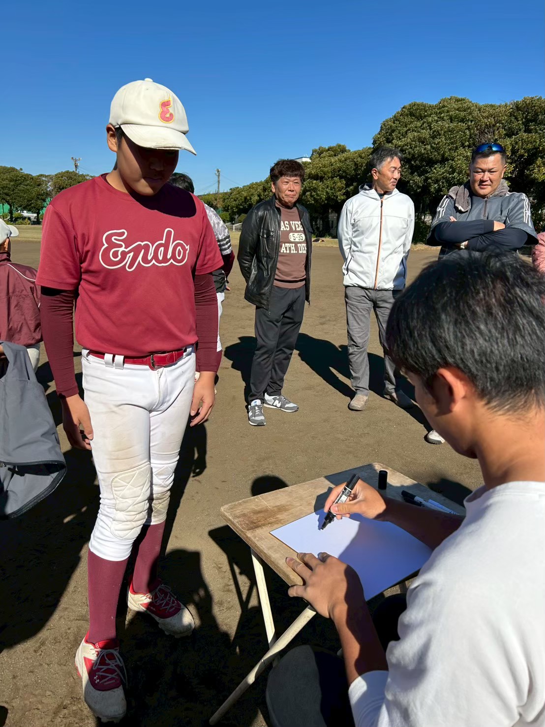 2025年11月22日に遠藤少年野球クラブの卒部生が報告に来てくれました。